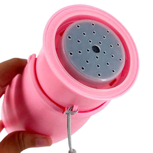 La Botella plegable es la solución perfecta para mantener a tu perro hidratado mientras estás fuera de casa. Con capacidad para 350 ml de agua y 130 g de granos, es ideal para paseos largos, viajes o excursiones. Su diseño compacto y plegable permite llevarla cómodamente en tu bolso o mochila sin ocupar mucho espacio. Fabricada con material resistente a altas temperaturas, es durable y segura para tu mascota.