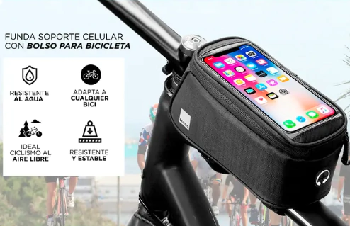 Este producto es ideal para salir a andar en bici y colocar tu celular en el soporte y guardar tus cosas mas importantes en el bolso. También cuenta con un material excelente el cual lo hace resistente a la lluvia.