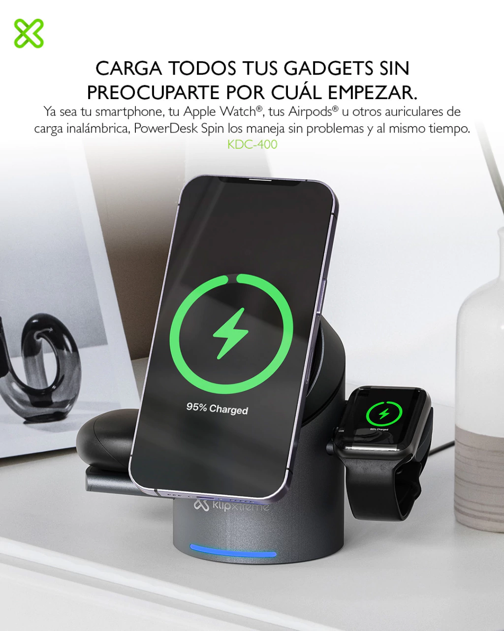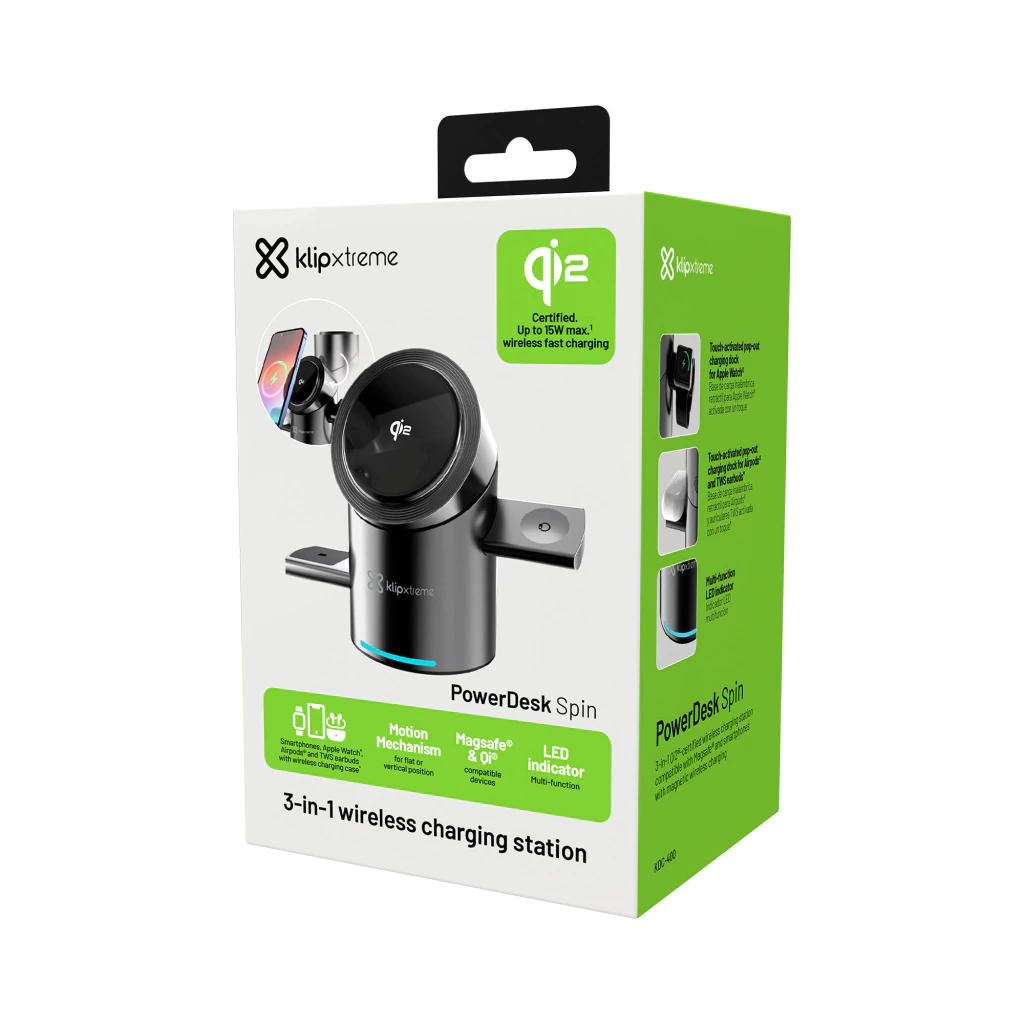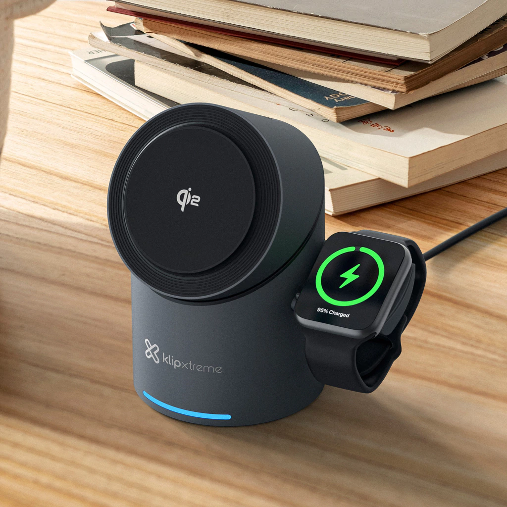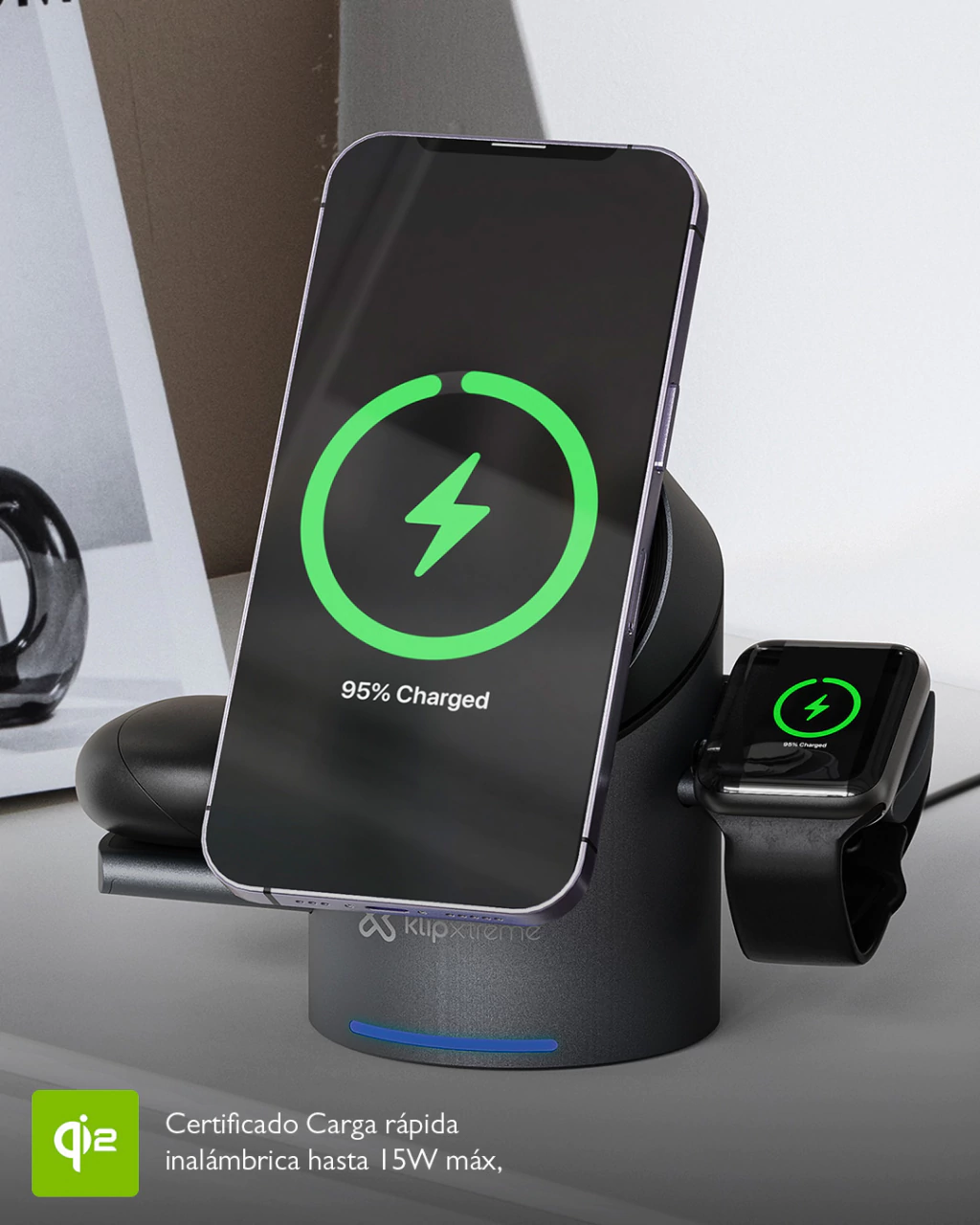 Magnética por naturaleza, multifuncional por diseño: la estación de carga inalámbrica 3 en 1 para manejar tus dispositivos de bolsillo favoritos de forma más fácil, rápida y con estilo. ¡Carga todos tus dispositivos con estilo gracias a esta estación de carga inalámbrica 3-en-1 con certificación Qi2! Ideal para MagSafe y la mayoría de los teléfonos compatibles con carga magnética, cuenta con una base de carga giratoria de 15W, espacios desplegables para tu Apple Watch y audífonos, y un anillo magnético para carga vertical segura en dispositivos no magnéticos. Desde tu teléfono hasta tus AirPods, disfruta de una carga rápida y sin esfuerzo con solo un toque.