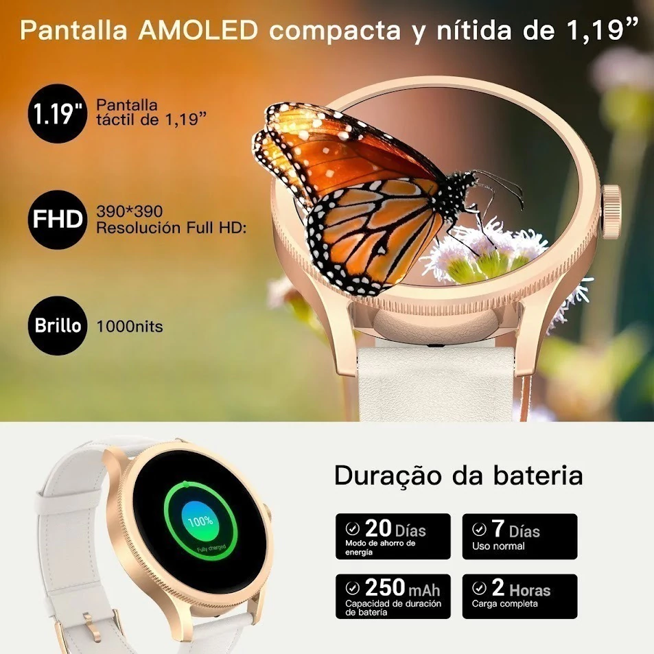 Elegante pantalla semi AMOLED de 1,27"!