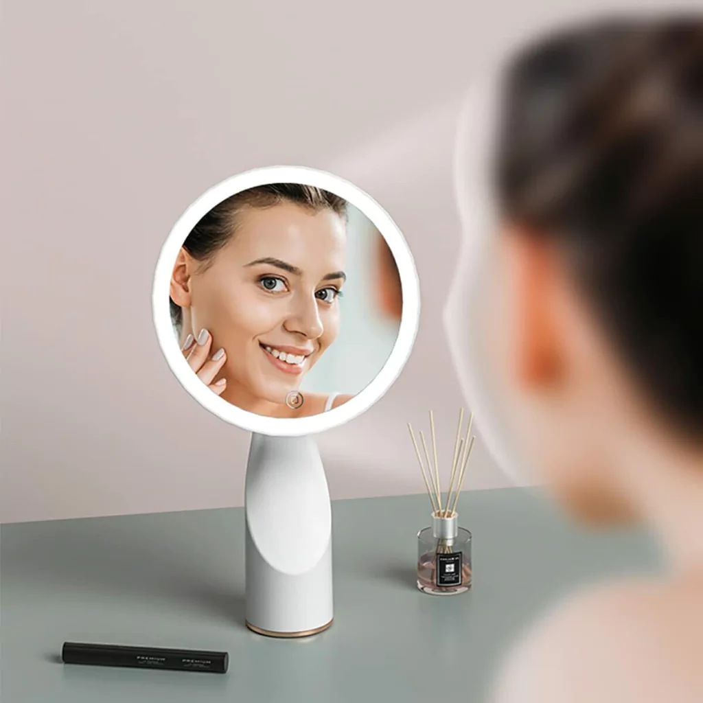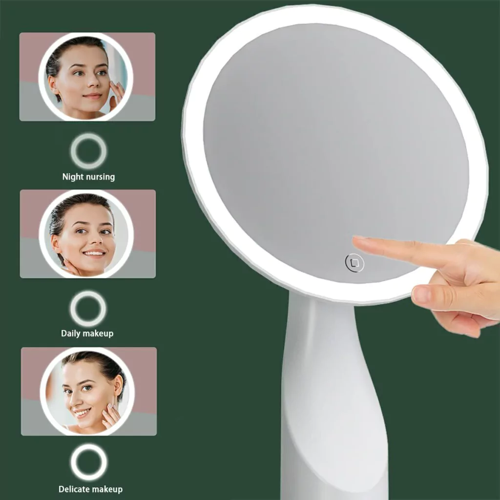 El espejo de maquillaje lleva incorporada una batería de litio recargable de 1000 mAh que puede utilizarse de forma continua durante 3 horas a brillo medio cuando está totalmente cargada.
