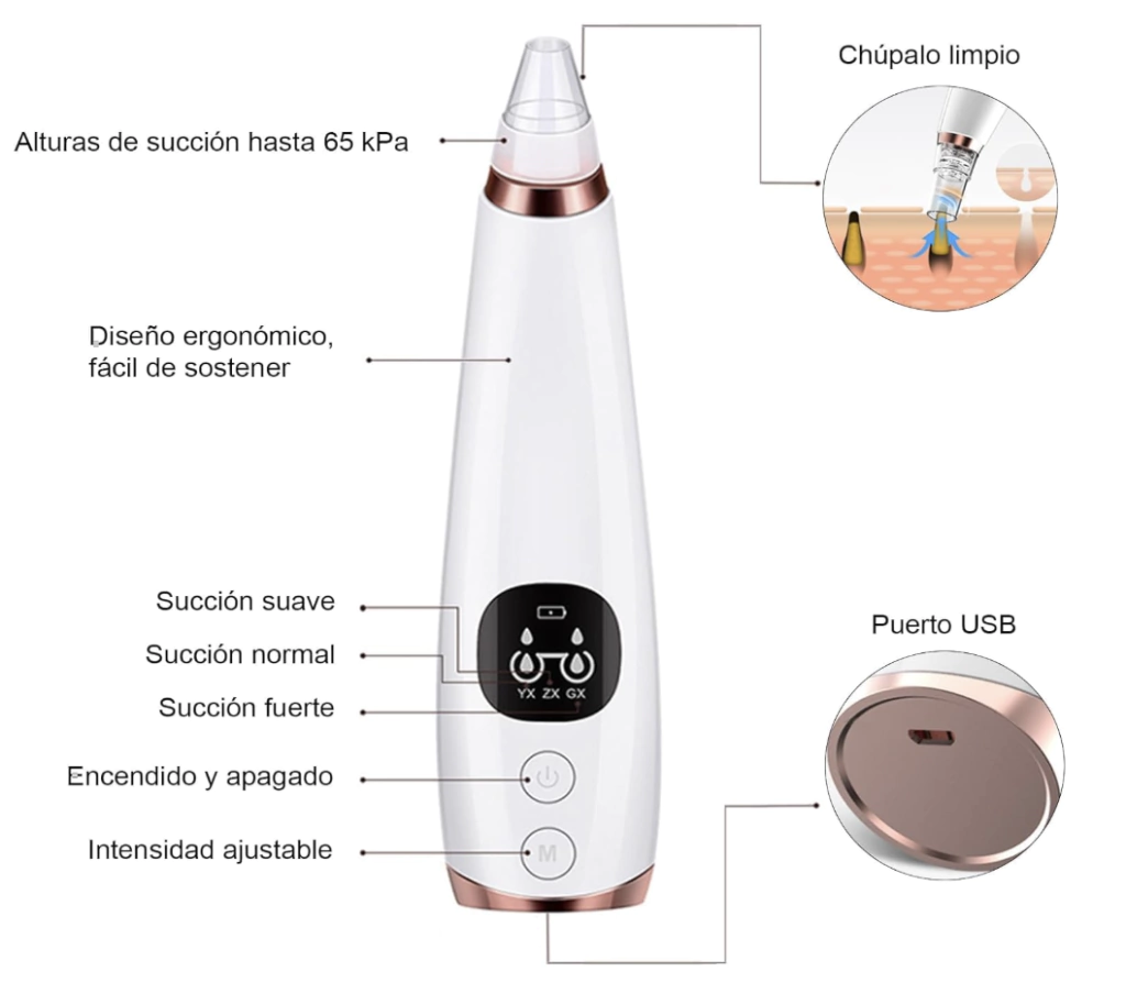 Nuestro Removedor de Puntos Negros tiene 3 potentes ventosas diferentes, adecuado para diferentes tipos de piel, que se pueden ajustar libremente según la sensibilidad de la piel para lograr una limpieza.