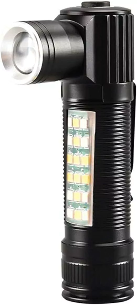 Linterna LED recargable para exteriores, linterna recargable. Aleación de aluminio de alta calidad, duro, no es fácil de dañar y ligero. Adecuado para exteriores, senderismo, caminar, pesca, barbacoa, reparación de automóviles y otras actividades al aire libre. Ligera y compacta, que tiene múltiples funciones. Es ideal para uso en interiores y exteriores. Litio recargable de alta capacidad respetuoso con el medio ambiente integrado con puerto de carga USB integrado, seguro de usar incluso cuando llueve.